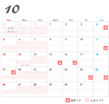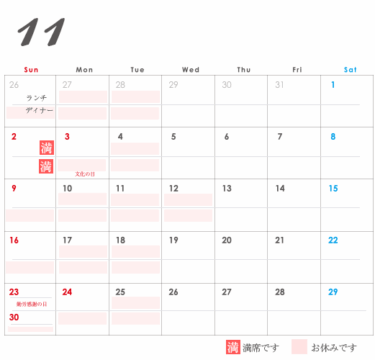 カレンダーにつきましてはタイミングで満席になったり、解除されたりする場合もございます。ご了承ください。