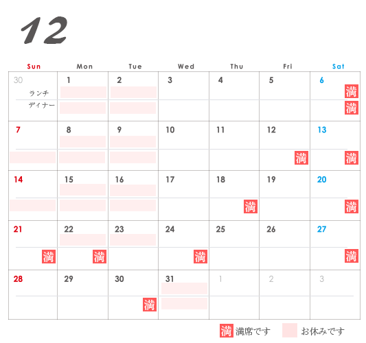 カレンダーにつきましてはタイミングで満席になったり、解除されたりする場合もございます。ご了承ください。